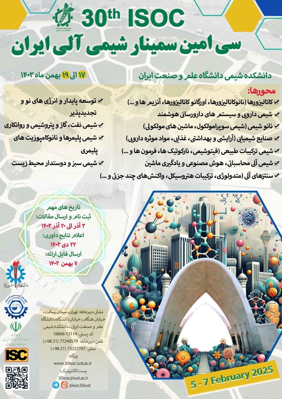 سی امین سمینار شیمی آلی در تاریخ ۱۷ تا ۱۹ بهمن ماه ۱۴۰۳ در دانشگاه علم و صنعت ایران برگزار خواهد شد .
