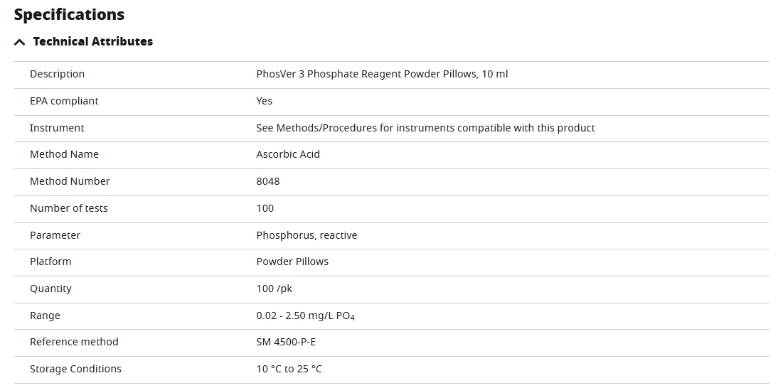 PhosVer® ۳ Phosphate Reagent Powder Pillows, 10 mL, pk/100